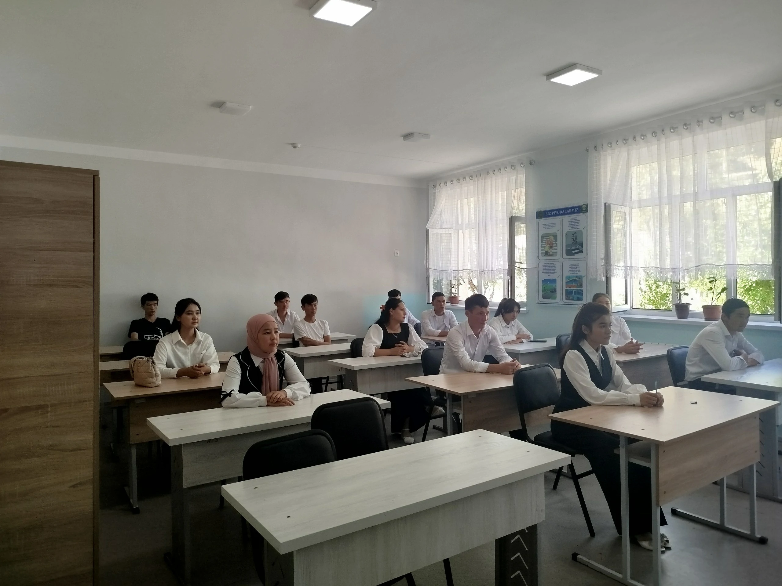 The teaching staff of the Mining Faculty and the Chairperson of the Women’s Advisory Council of the branch visited Secondary School No. 9 in the Terakli microdistrict of Almalyk and met with teachers and students.