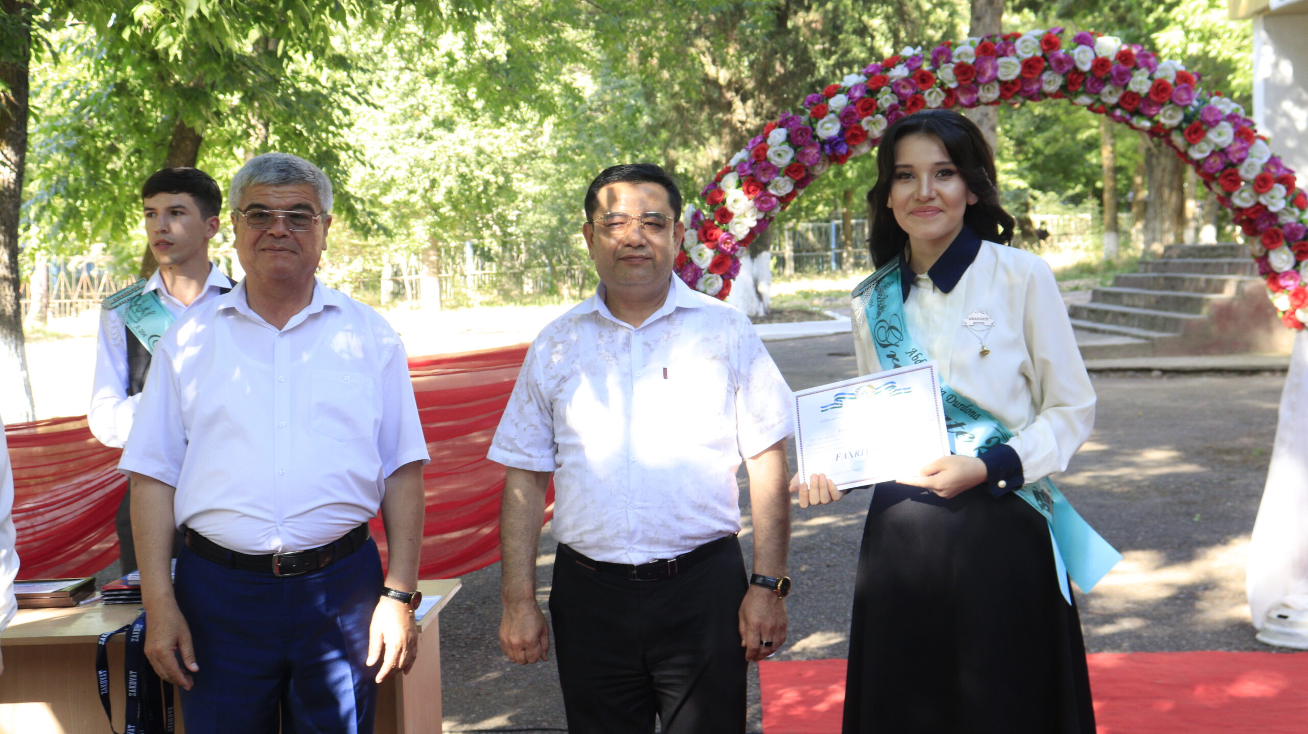 Ta’kidlash joizki, bu yil litseyni 47 nafar o’quvchi muvaffaqiyatli tamomlagan boʻlib, ulardan 4 nafari imtiyozli diplom bilan tugatishdi. 24 nafar bitiruvchi muddatidan avval talabalik sharafiga muyassar bo‘lishdi. Bitiruv marosimida litsey direktori Yu.Ubaydullayeva tomonidan a’lo xulqi, o’qishdagi muvaffaqiyatlari, odob-axloqi va bilim egallashdagi alohida yutuqlari bilan tengdoshlariga o’rnak bo’layotgan o’quvchilarning ota-onalariga tashakkurnomalar taqdim etildi. Filial rahbariyati tomonidan litsey o‘qituvchilariga va faol o‘quvchilarning ota-onalariga tashakkurnomalari topshirildi.