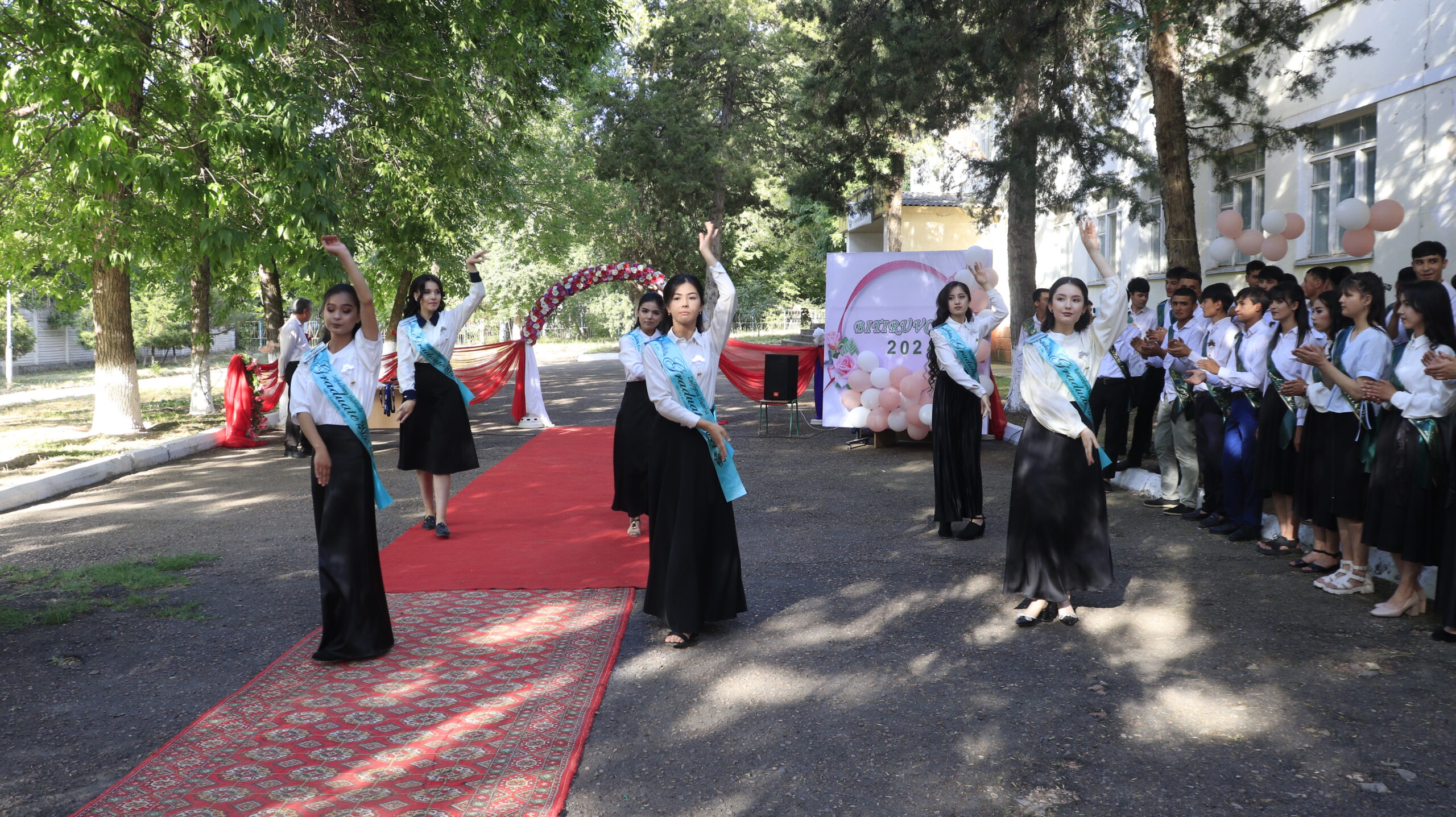 Bayram tadbirida bitiruvchi oʻquvchilar hamda filialning iqtidorli talabalari oʻzlarining badiiy chiqishlarini namoyish etishdi.